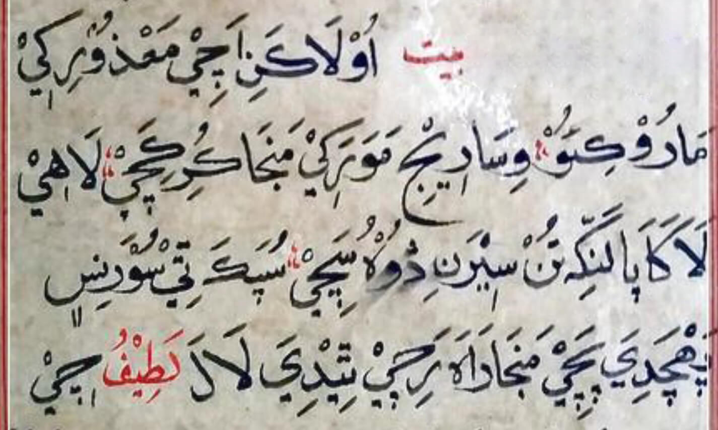 Manjhaa'n raah'a rachi, theendeen'a Laal Lateef'u chae.