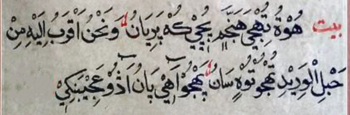 وَنَحنُ اَقرَبُ اِلَيهِ مِن حَبلِ الوَرِيدِ ، تُنھِنجو تو ئِي ساڻُ،