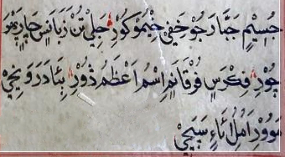 جُسٖيْمٍ جَبَّارَ جُوْ خَفِيْ خِيْمُوْ کُوْرِ﮶