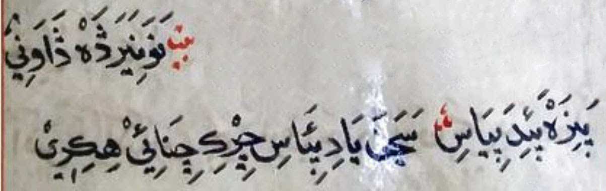 تُوْرٖيْ تَرِي﮼ تُنْ يَا اَللہُ تُوْ دَرُ تُوْءِ نَڇَڎِيَان﮶