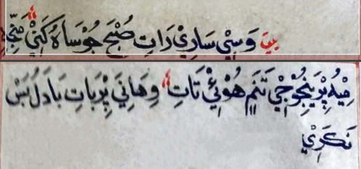 مَنجِّهٍ مِيْهُ پِرْيَنِجُوْ جٖيْ تَنَم﮼ هُوْئٖيْ تَاتِ﮶