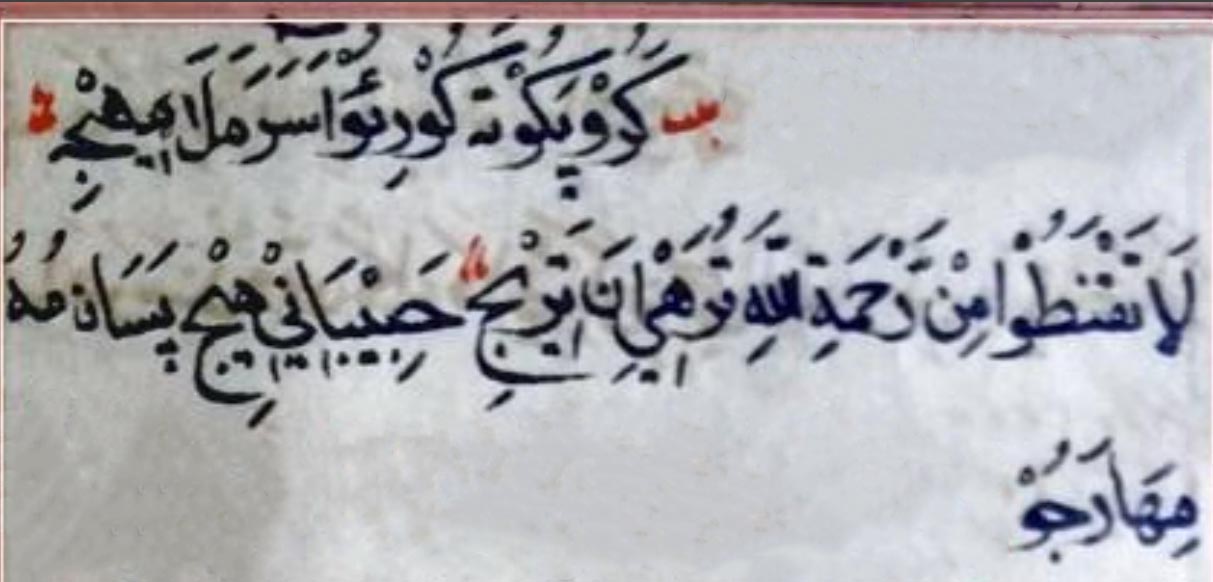 لَاتَقْنَطُوْ مِنْ رَّحْمَةِ اللہِ تُرَهٖيْ اِنَ تَرٖيْـجِ﮶