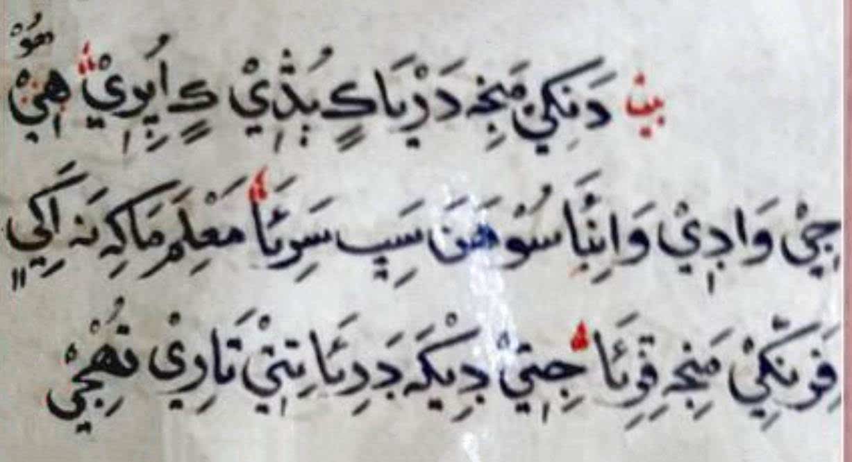 دَنکِيْ مَنجِہ دَرْيَا ڪٍ ٻُڎٖيْ ڪٍ اُپِرٖيْ﮶