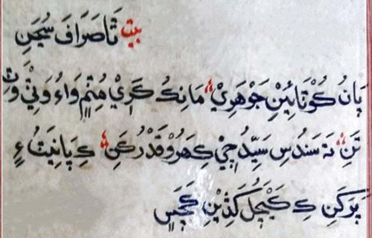 - (بيت) سَڄو تان سَؤُ لَکَنِ لَھي…