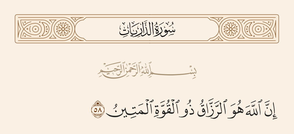 إِنَّ ٱللَّهَ هُوَ ٱلرَّزَّاقُ ذُو ٱلۡقُوَّةِ ٱلۡمَتِينُ بابت