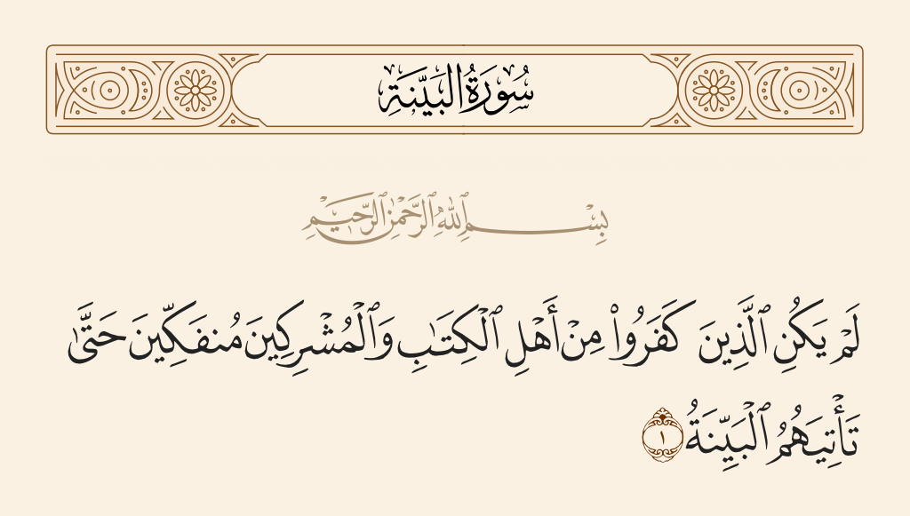 "The disbelievers from amongst the People of the Book and the idolaters would not desist" (Holy Quran, Surah al-Bayyinah, Ayah No:1 )